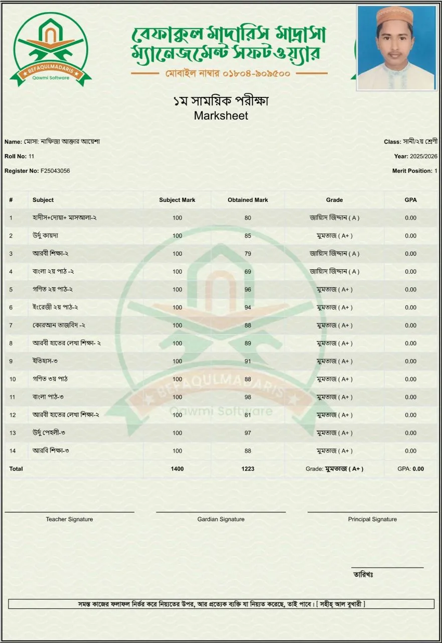- প্রমোশন স্ট্যাটাস: সফলভাবে পদোন্নতি পাওয়া শিক্ষার্থীদের তালিকা এবং ব্যর্থ বা ঝরে পড়া শিক্ষার্থীদের (ব্যর্থ প্রমোশন) তালিকা।